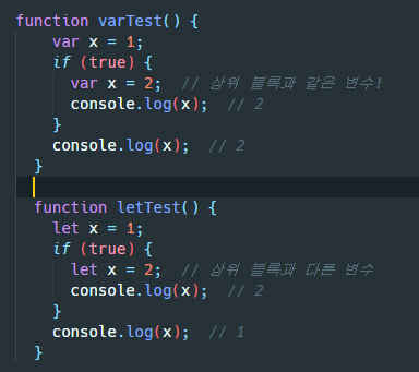 즉 let은 변수가 바뀌는걸 허용한다고 볼 수 있다.