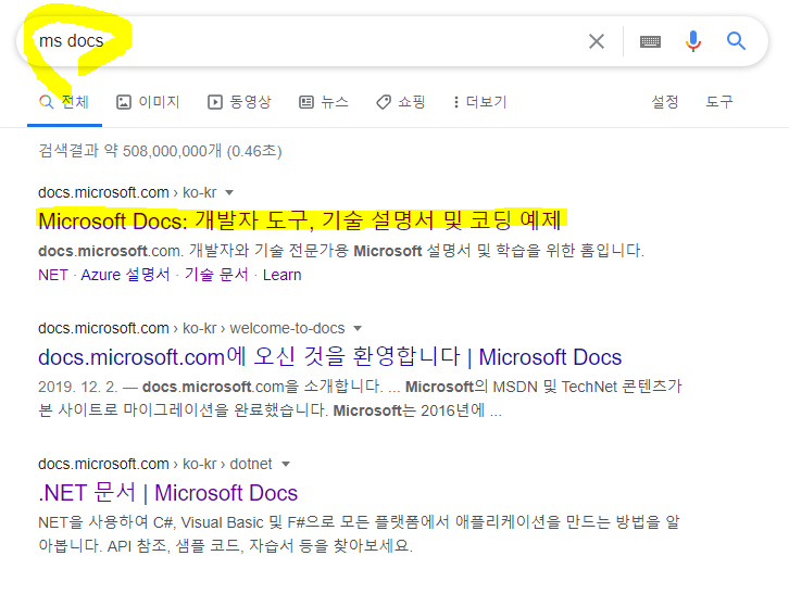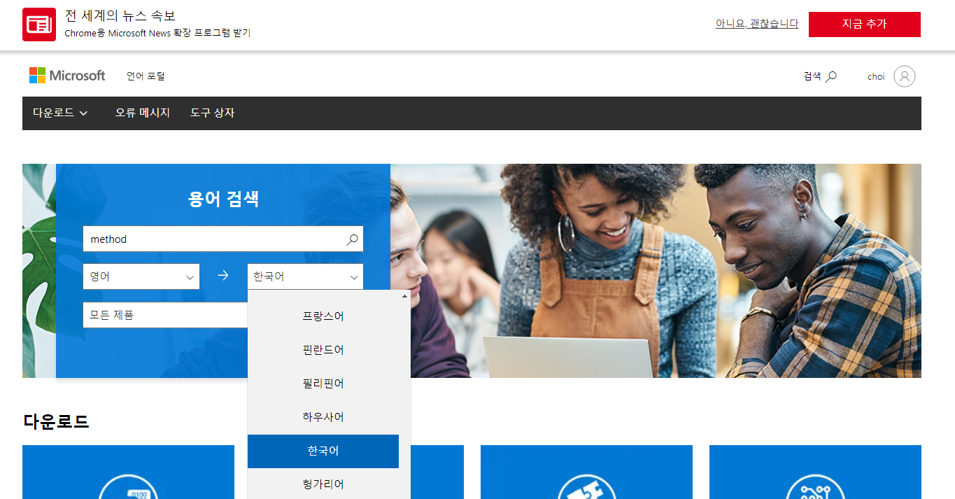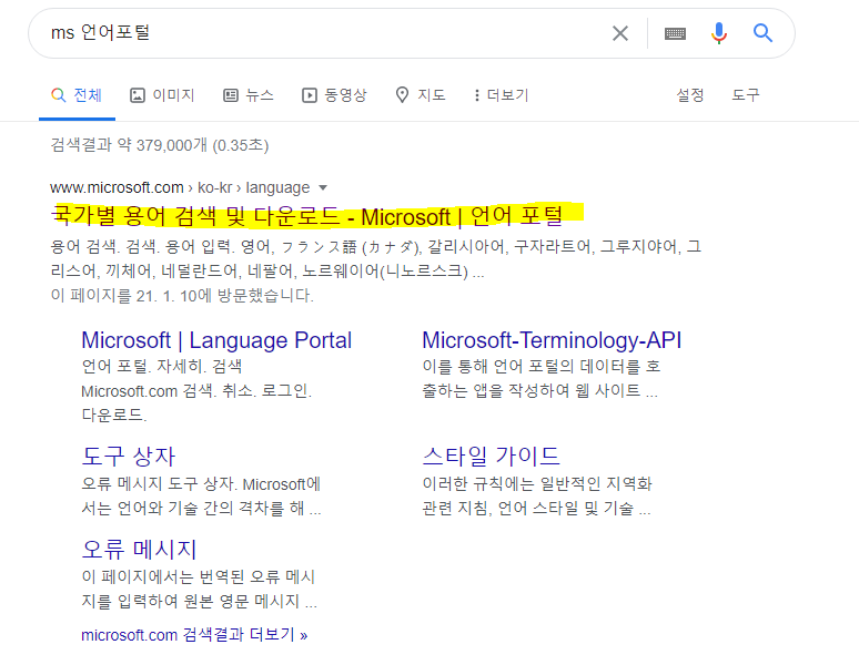 아래는 ms 언어포털에서 용어 검색을 하여 정확한 용어 표현을 위해 사용하기도 한다.