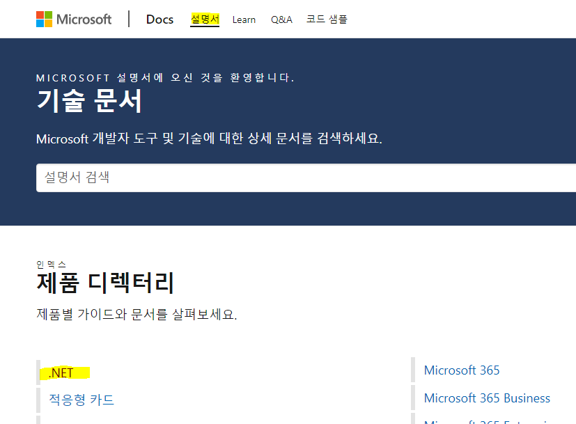 "설명서" 메뉴를 통해 .net 을 볼 수 있고