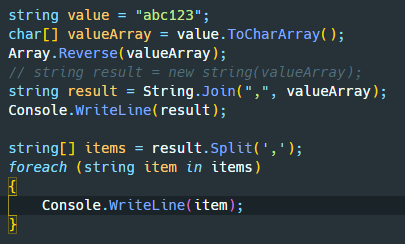 1. ToCharArray()를 사용하여 문자열 역방향 정렬 후 문자 배열 새 문자열에 결합