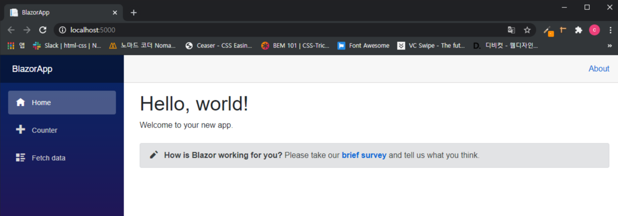 명령어 의미: blazorserver 앱 프로젝트를 만들고, BlazorApp라는 폴더를 생성 한다.