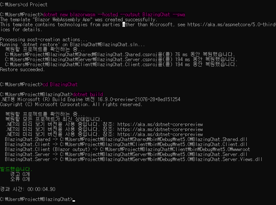 Blazor ํธ์คํ ํ๊ฒฝ ๋น๋(์์)๋ฅผ ๋ช ๋ น์ด๋ฅผ ํตํด ์์ํ๊ฒ ์ต๋๋ค.