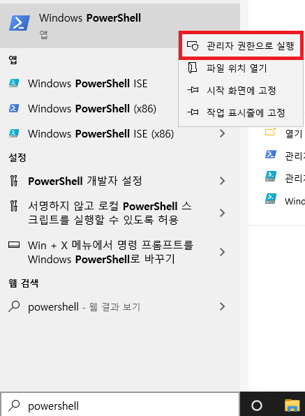 3. Windows PowerShell 을 "관리자 권한"으로 실행 후