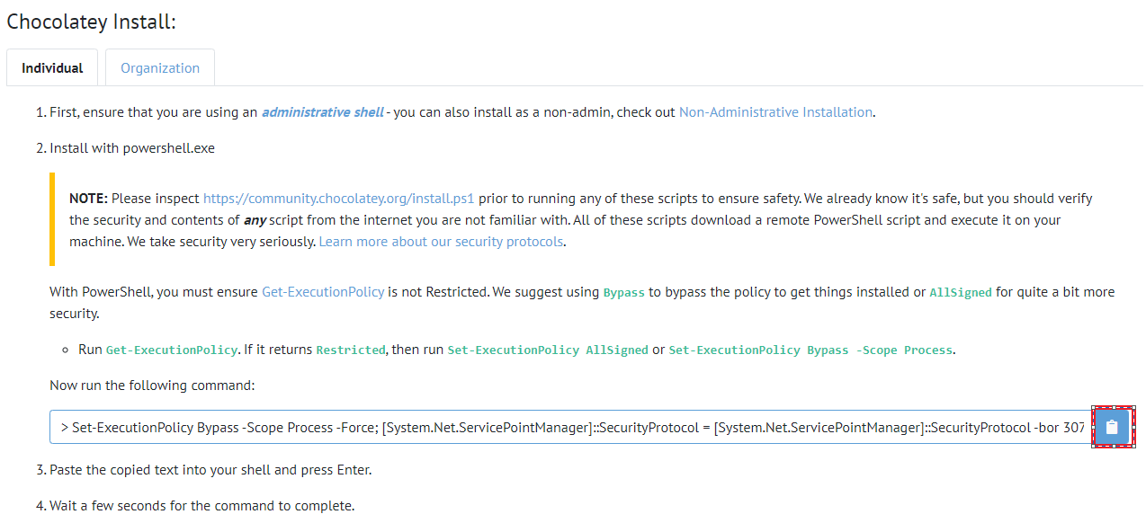 아래의 링크복사를 누르고 PowerShell에서 붙여넣기 후 Enter