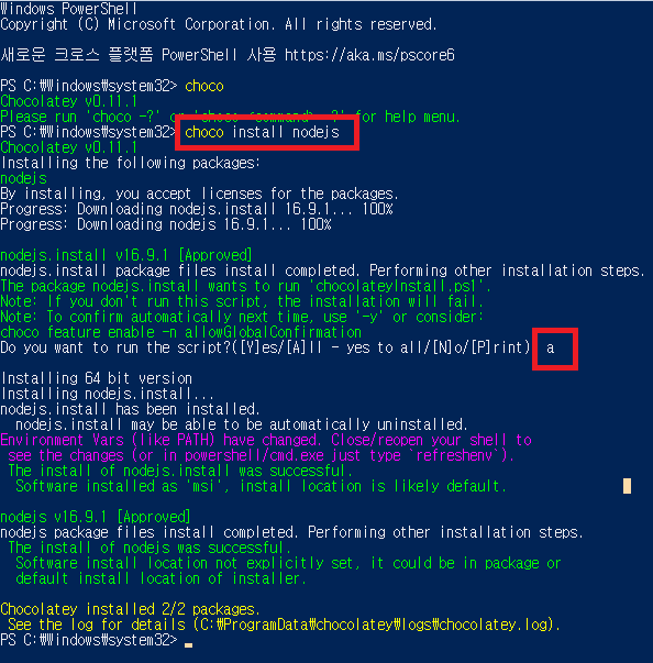 잘 작동하는지 확인하려면 choco 를 입력해보자